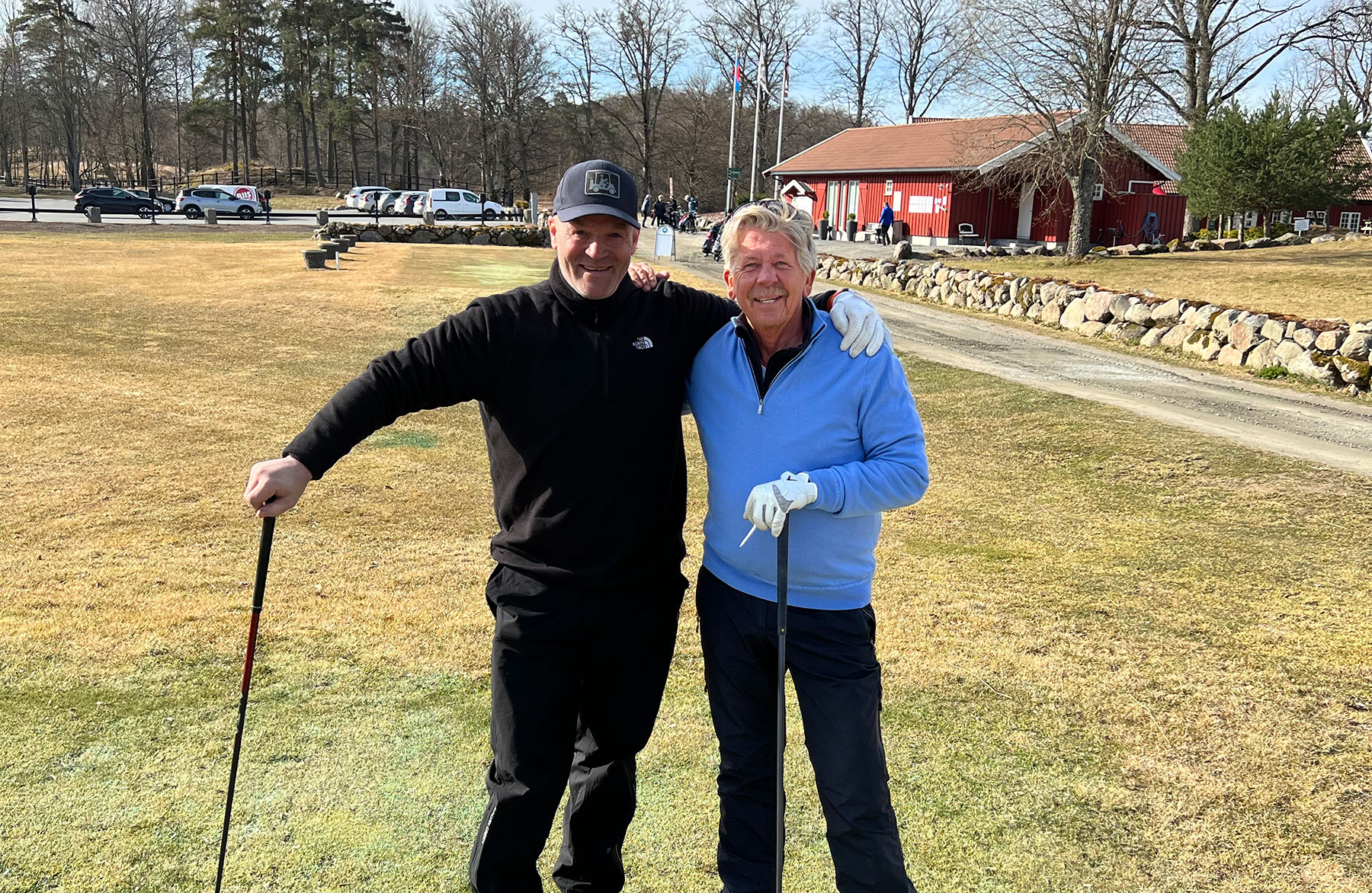 Årets golfsesong er endelig i gang. Den første gruppen med bl.a. Tov Egil Hovinbøle og Jan Olav Enger gikk ut kl 12.00 tirsdag 12. april.
