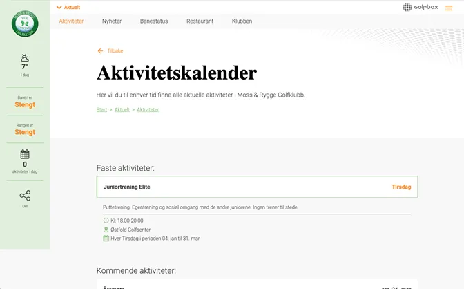 Gjennom en normal uke i en golfklubb skjer det mange forskjellige aktiviteter. Vi har laget en komplett aktivitetskalender hvor du som medlem og gjest kan orientere deg om alt fra: